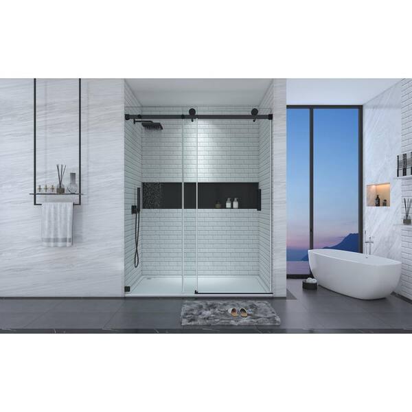 Vanityfus 60 In W X 76 In H Single Sliding Frameless Shower Door In Matte Black With 3 8 In 10 Mm Clear Glass Vf Ss05 60mb The Home Depot